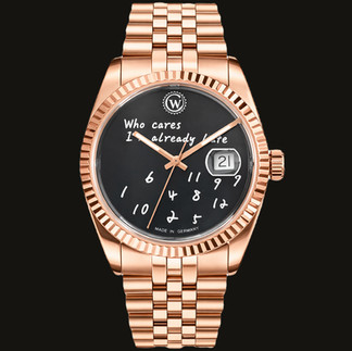 The "Who cares I'm already late" watch is not for perfectionists. It's for people who can laugh at themselves – and who are perhaps a little too often late.